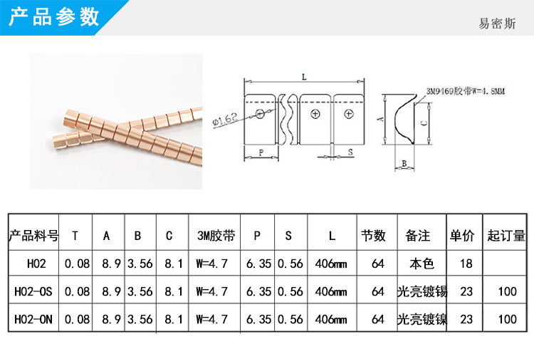 易密斯97-520屏蔽簧片,帶自粘式膠帶,進(jìn)口鈹銅