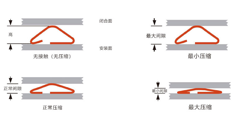 在最大間隙情況下,彈片的壓縮率必須為約25%;彈片可壓縮至50%的高度(或更多)。